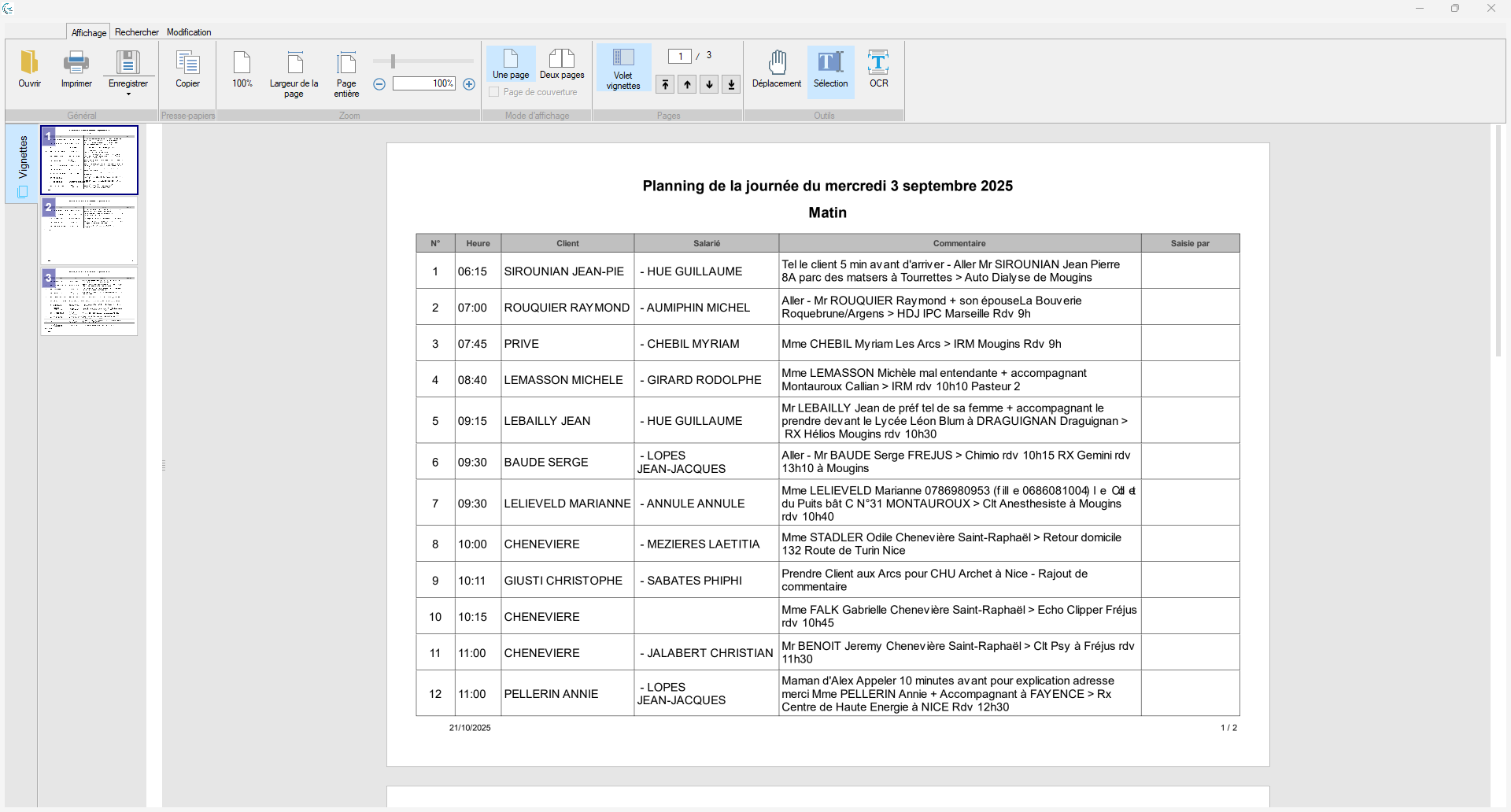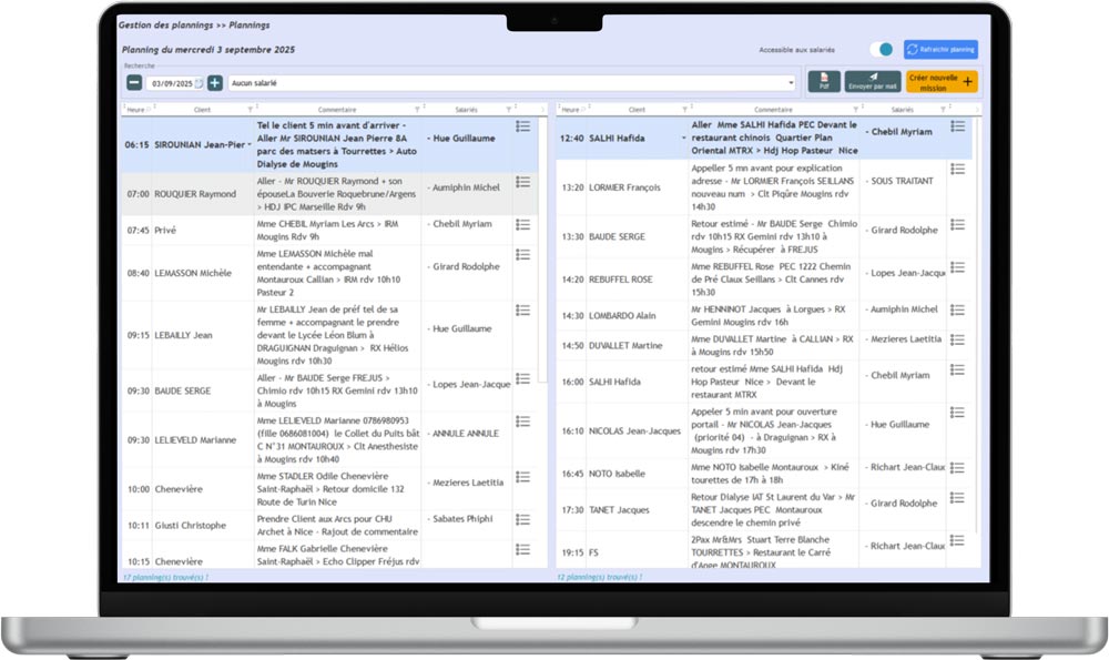 Parfois vous aurez la nécessité d’avoir votre planning sur un support papier. C’est pour cela que nous avons prévu de pouvoir exporter votre journée de planning en PDF. Ainsi vous pouvez l’emporter avec vous ou en profiter de la manière que vous souhaitez. Cela n’empêche pas d’avoir toujours à porter de main votre planning depuis notre application.