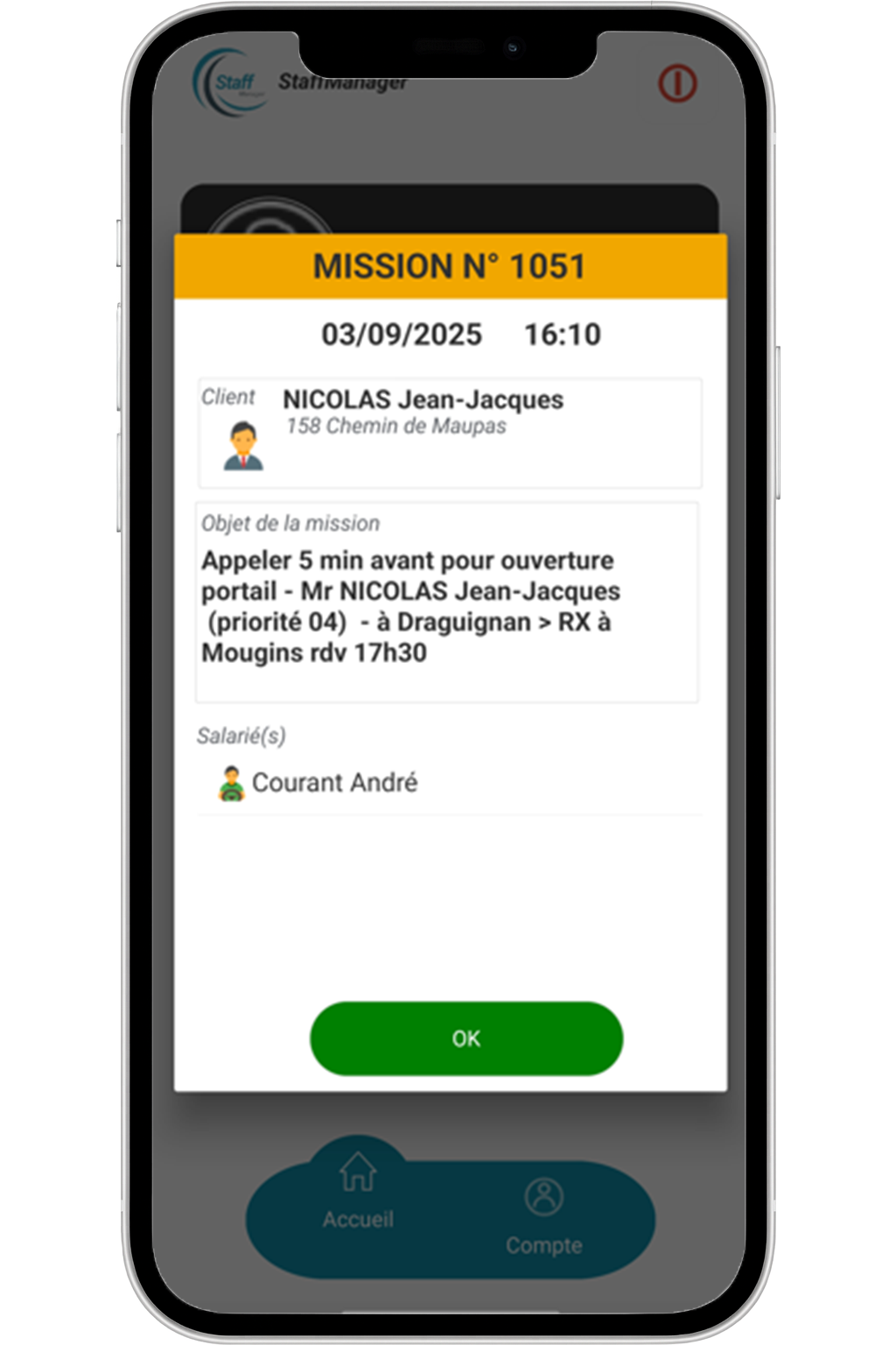 Un réel gain de temps et de sécurité ! En notifiant votre salarié d’une mission de dernière minute, vous donne l’assurance que ce dernier à bien reçu et prit connaissance de sa nouvelle mission. Un petit clic sur un bouton et toutes les informations de votre nouvelle demande se retrouve à porter de main de l’employé qui doit l’exécuter.